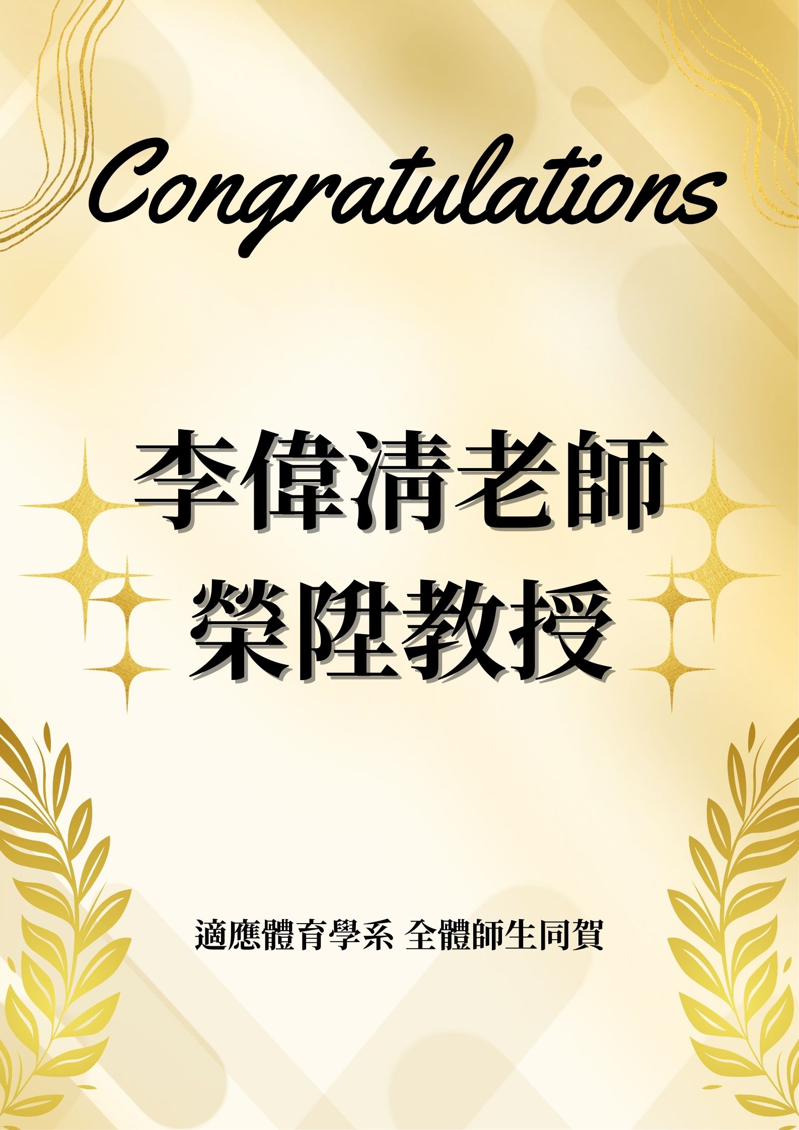 《教師升等》恭賀!本系李偉清老師自115年2月1日起榮陞教授!