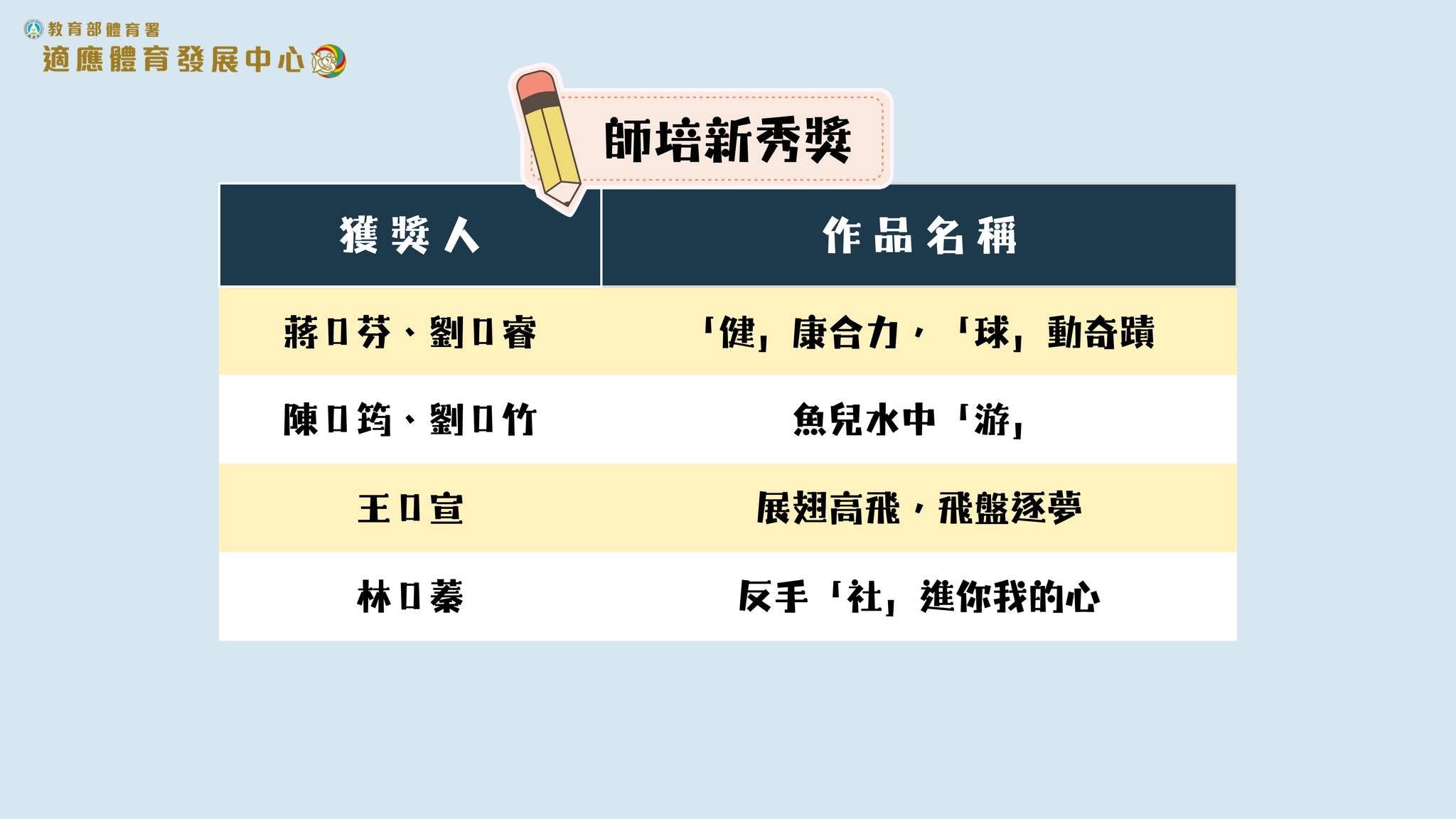 狂賀!恭喜🎉王季宣同學參加114年教育部體育署適應體育教案競賽,榮獲「師培新秀」獎❤️